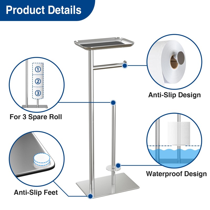 - ??Hochwertiges Material: Dieser Toilettenpapierhalter besteht aus Edelstahl, der langlebig und rostfrei ist. Die Unterseite verfgt ber ein Silikonfu?design, das rutschfest ist und den Boden vor Kratzern schtzt.