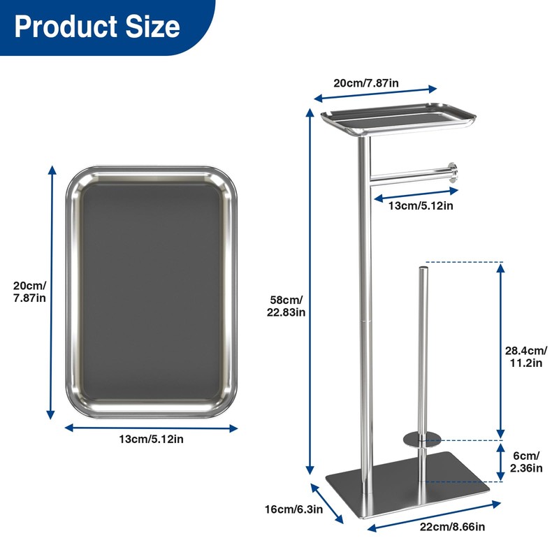 - ??Einfache Montage: Bitte befolgen Sie die Anweisungen zur Montage des Toilettenpapierhalters, die Montage ist sehr einfach. Der montierte Toilettenpapierhalter misst 22,8"(H) x 6,3"(B) x 8,6"(L).