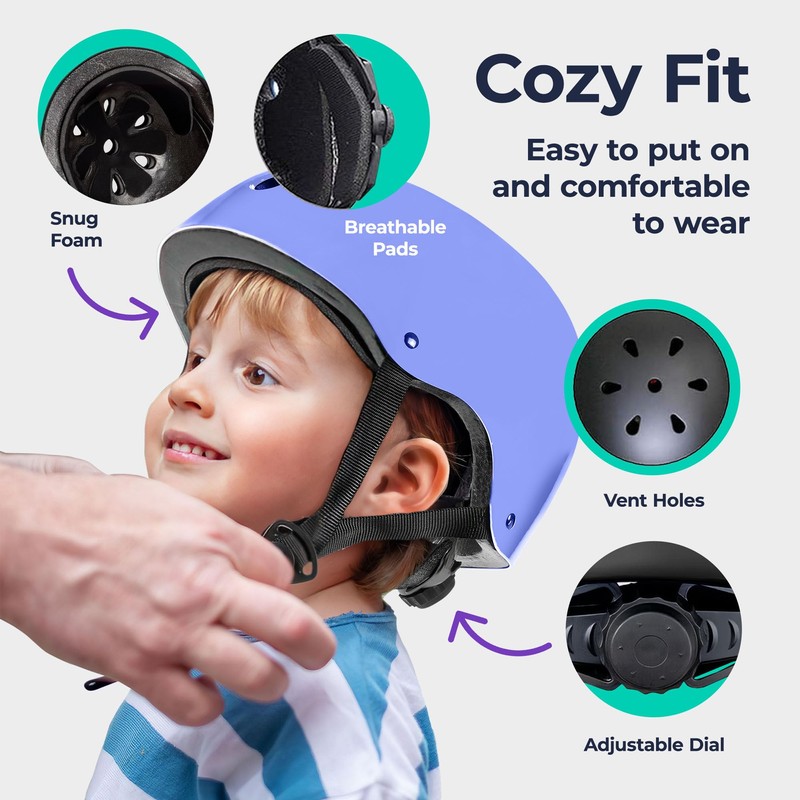Niftii Kids Helmet with Pads and Personalisation Kit - Adjustable Multi-Sport Complete Safety Gear for Cycling, Skateboarding & Scooting, Ideal for Boys & Girls Ages 3-15, Purple Bike Helmet Set