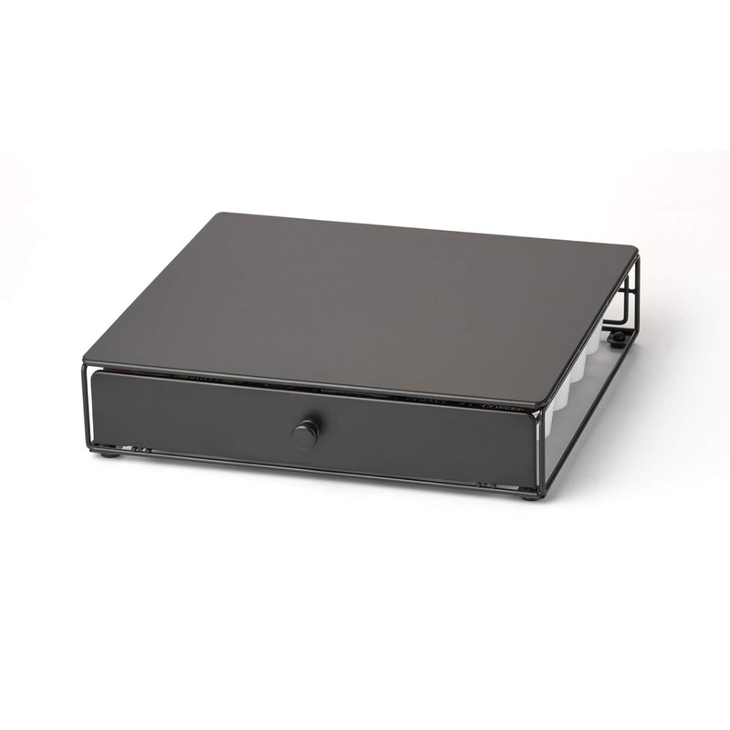 - KITCHEN ORGANIZER: The functional and hassle-free style allows you to stand any coffee brewer on top of the drawer. With a chic black satin finish, this holder will fit perfectly into your kitchen, dorm countertop, or office coffee bar.