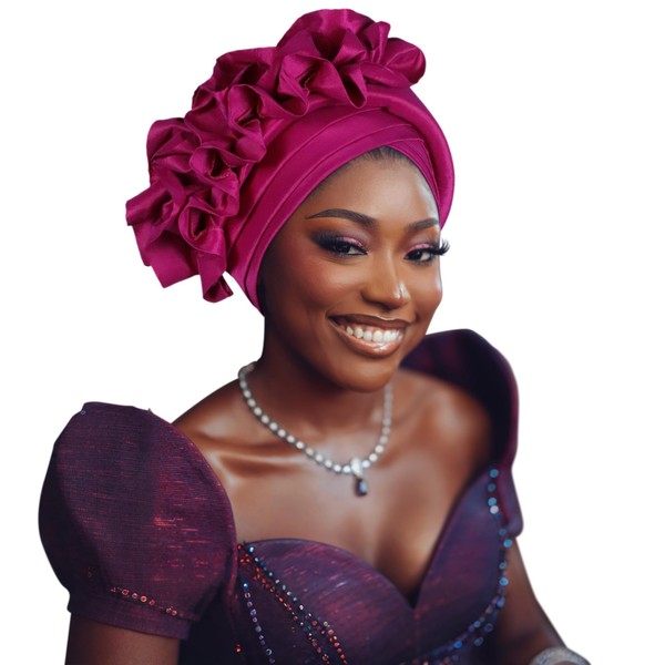 Nigerian Women's hat Folding Fan African Headscarf hat,Auto Gel Headwear,Suitable for Weddings,Parties,Special (US, Alpha, One Size, Medium, Rose Red)