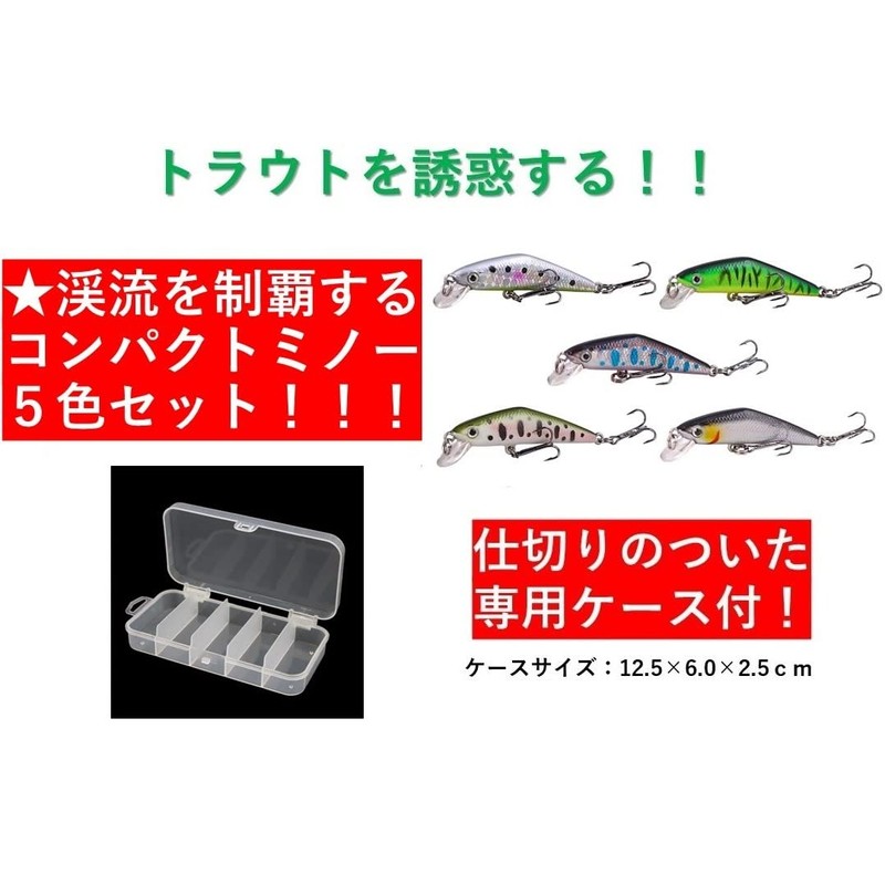- Weight: 0.1 oz (2.7 g); Body Size: 1.8 inches (4.5 cm); Color: Set of 5 colors including Yamame Colors; Hook: Treble Hook; Case: Dedicated case with divider for 5 minnows