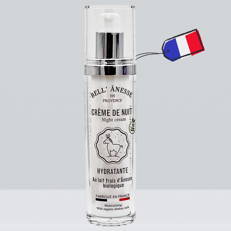 - MOISTURIZING This night cream is enriched with fresh organic donkey milk from the Pyrenees, glycerin and a retinol-based active ingredient to give comfort and suppleness to your skin.