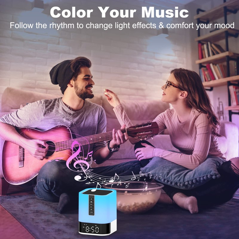- 【Multi-functional Night Light Bluetooth Speaker】- Bluetooth 4.0 Hifi Speaker + White Noise Machine + Sleep Sound Machine with Timer + Multi-color Touch Control Led Lamp + Kids Night Light for Bedroom + Bedside Alarm Clock for Kids! Can also be used as MP3 player supporting USB Flash Drive and Micro SD/TF Card input. Perfect for bedroom, living room, kitchen cooking, exercising, party, camping, or outdoor activities etc.