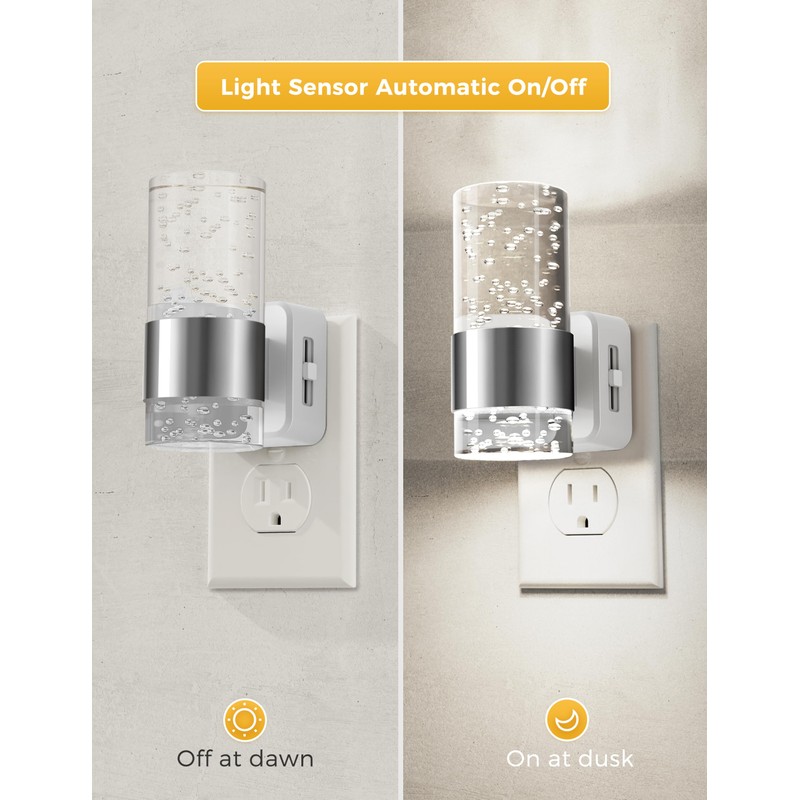 - Dusk to Dawn Night Light: The light sensor night light automatically turns the light on when it gets dark and switches it off as daylight returns, ensuring convenient and hassle-free operation. It is perfect for adding safety and comfort to your home without manual intervention.