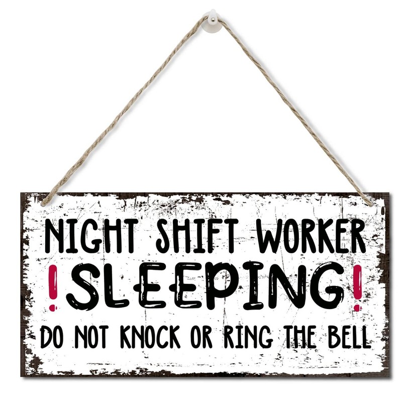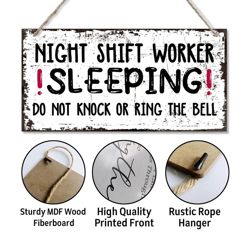 Night Shift Worker Sleeping Do Not Knock Or Ring The Bell Wall Decor Sign, Printed Wood Plaque Sign Wall Hanging, Funny Day Sleeper Sign, Decor Wall Art Sign 12" x 6"