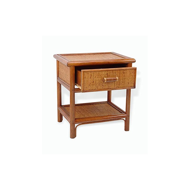 Night Table w/ 1 Drawer Natural Rattan Handmade