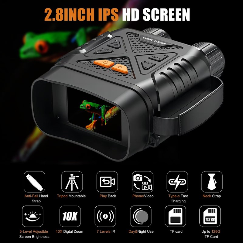 - NIGHT VISION BINOCULARS - Includes night vision goggles, Type-C cable, neck strap and user manual English language not guaranteed). Experience exceptional clarity even in complete darkness with our night vision binoculars for adults. Perfect for nighttime navigation or observing wildlife, our binoculars ensure clear, bright images every time. With support for TF cards up to 128 GB, you have plenty of space for all your adventures.