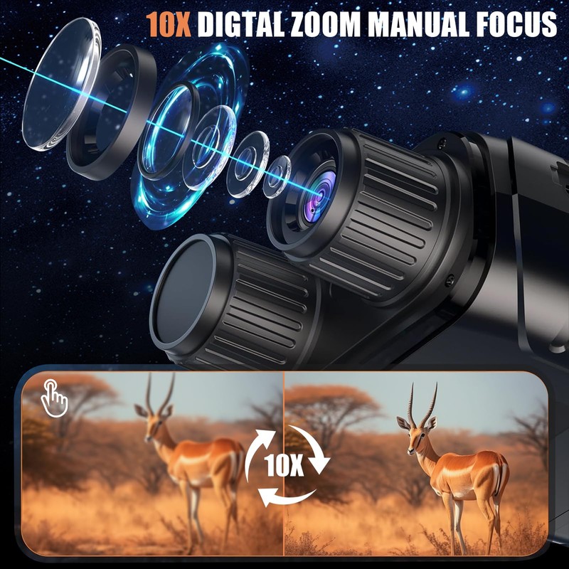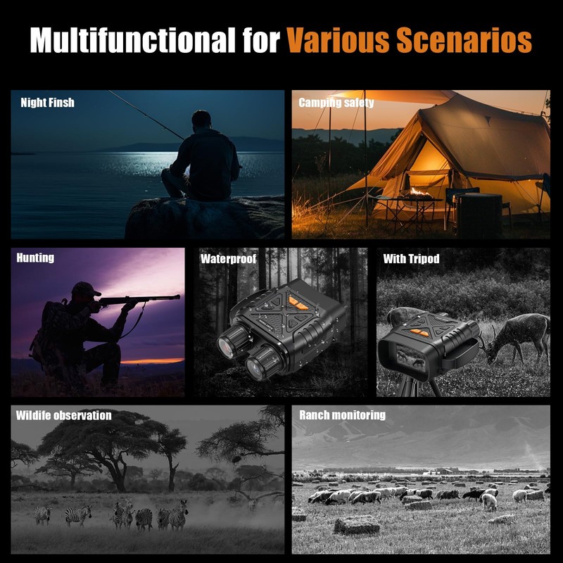 - Perfect night vision range in the dark: Enjoy a stunning night adventure, equipped with a unique tactical flashlight, 800m night vision range in complete darkness, supports 20MP photos and 1086 video recording, 10x digital zoom, waterproof IP65