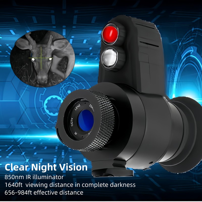Clear Night Vision: Night Vision Monocular Goggles are equipped with an 850nm IR illuminator, offering an impressive viewing distance of up to 1640ft in complete darkness and an effective distance for observing targets of 656-984ft