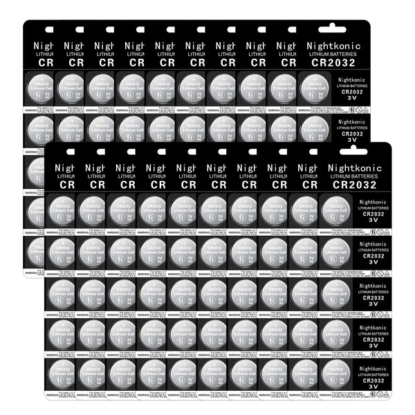 Nightkonic 100 pcs Pack - CR2032 Battery 3 Volt Lithium Coin Cell 2032 Batteries