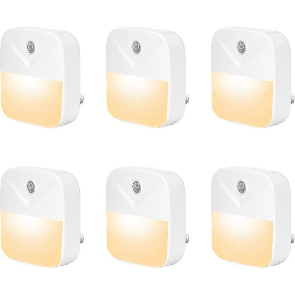 6 Pack Night Light Plug in, Warm White LED Nightlights with Smart Dusk to Dawn Sensor, Plug into Wall Nightlights Suitable for Bedroom, Bathroom, Hallway, Kitchen, Stairs, Kids, Adults, Kids Room