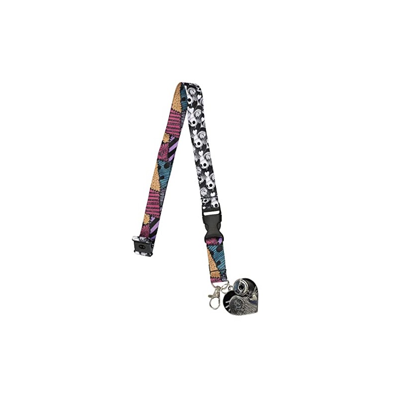 - CUSTOM DESIGN: A heart shaped metal charm shows an image of Jack and Sally together while the lanyard is designed to look like Sally's dress. Images of Jack and Sally appear on a black background on the lanyard. Fans will love this custom design.