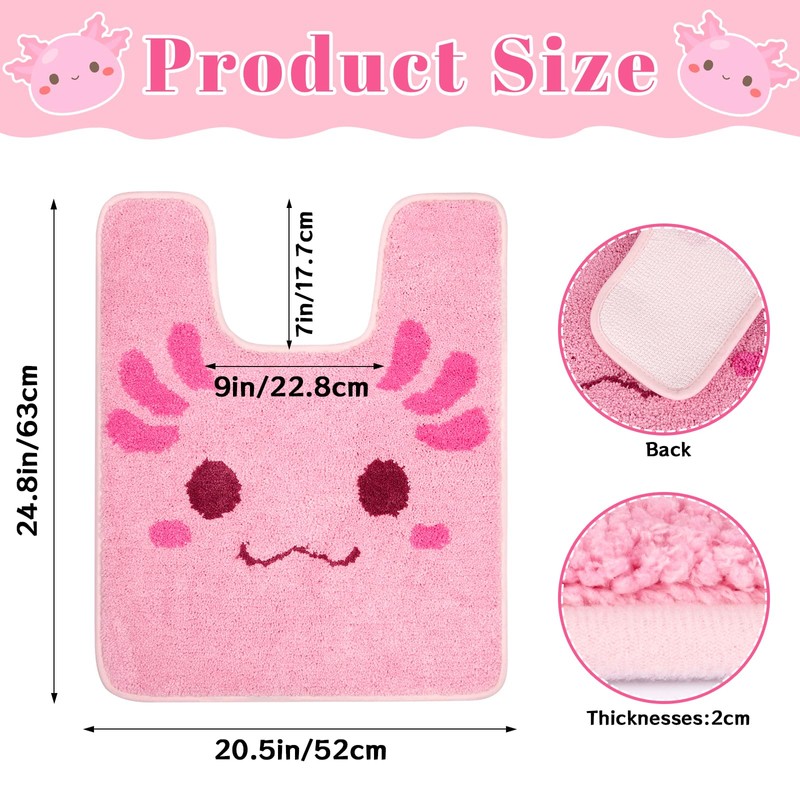 - PERFECT DECORATION AND GIFTS: The Axolotl toilet rug measures 24x20 inches and the opening is 9 inches in diameter, please check the size before purchasing! The pink toilet mat is not only perfect for decorating your bathroom, but also a great gift for friend, family, women and housewarming