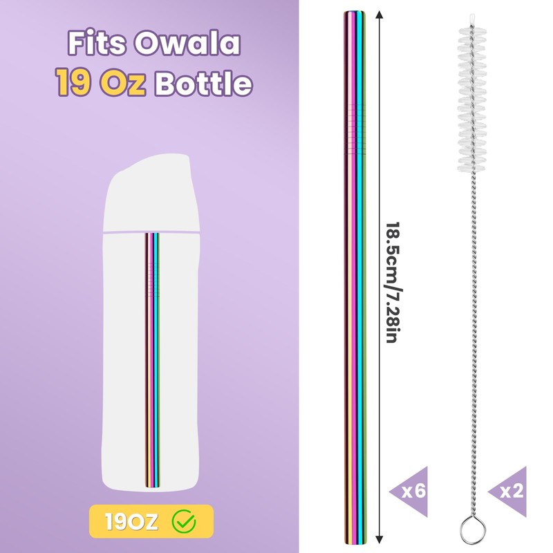 NiHome 6-Pack Iridescent Stainless Steel Drinking Straws, Compatible with Owala FreeSip 19oz & Tritan 25oz, Food-Grade Rust-Resistant Material, Includes Cleaning Brushes & Travel Storage Bag