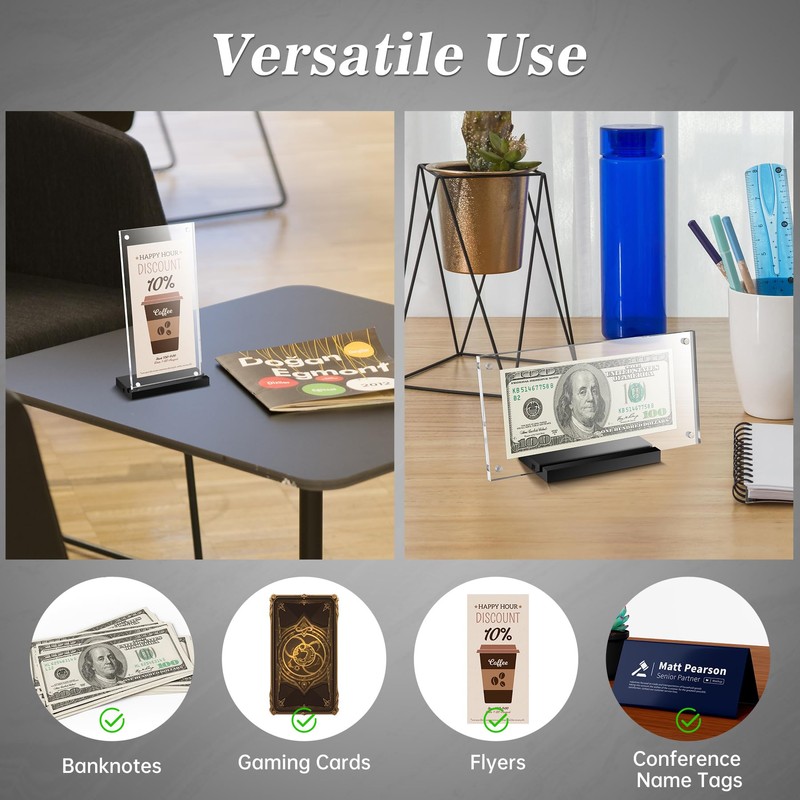 - Multifunctional Display Solution: This acrylic display stand is specifically designed for showcasing U.S. dollar bills, but it's also ideal for photos, stamps, pictures, paintings, and other paper-based artworks. Its versatility makes it a perfect choice for collectors and professional displays.