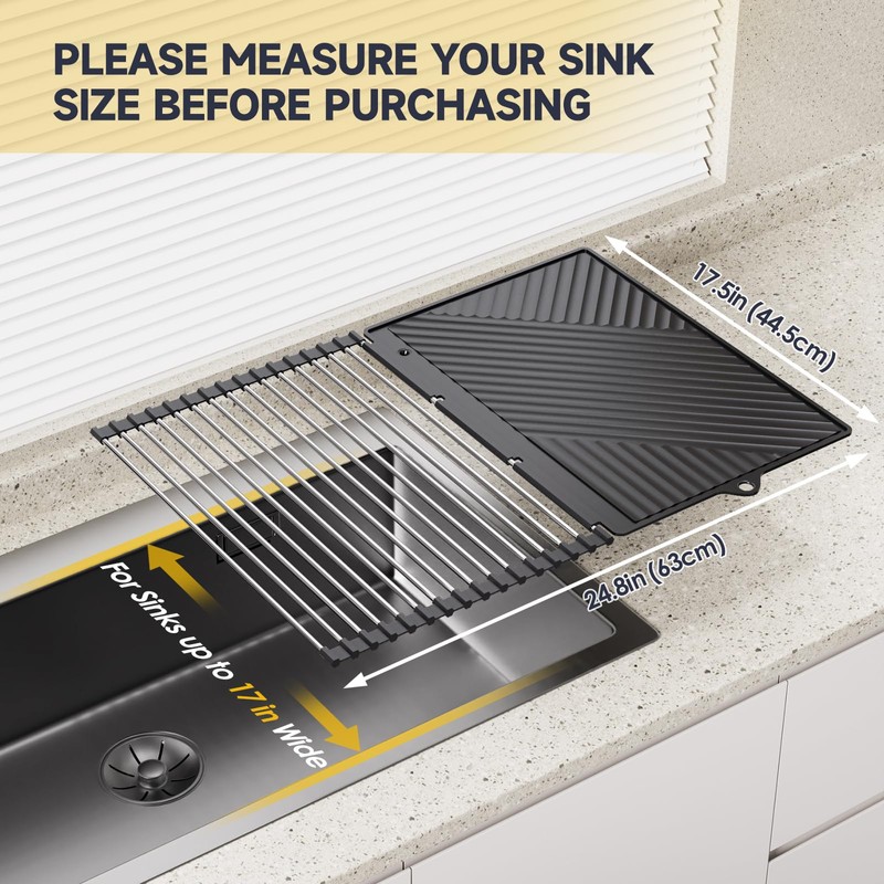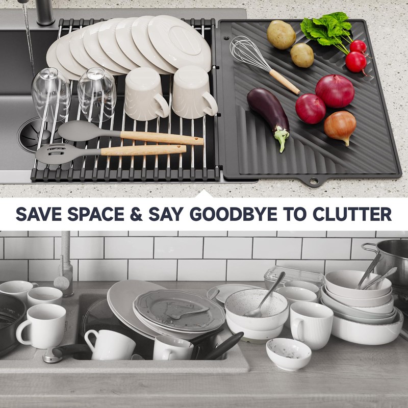 - 🔧 Modular Construction: Distinctive modular design allows you to separate the roll-up dish drying rack into a compact dish rack and a spacious silicone mat for your kitchen countertop. Customize your kitchen surface as needed, combining or using them individually to perfectly suit your requirements.