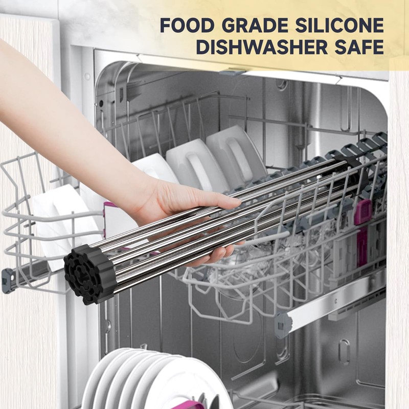 - 📏 Space-Saving and Effortless Cleaning: Its compact roll-up design maximizes space efficiency. Easy to clean, and dishwasher-safe. When not in use, simply roll it up and store it in your kitchen cabinet or drawer, taking up minimal space.