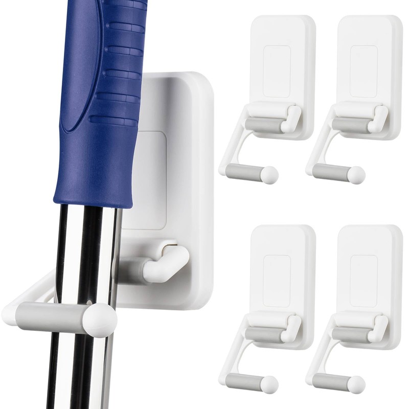 NiHome Multi-Use Wall Mounted Mop Holders 4PCS for Mops, Brooms, Tools, Umbrellas, Kitchen & Bathroom Supplies, Space-Saving Broom Holder with 180° Rotating Design, Self-Adhesive No-Drill Installation