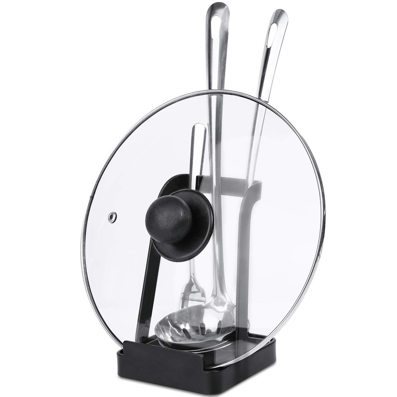 - ✅ Wide & Creative Applications: The rack can hold a range of pot lids, large or small, heavy or light, glass or stainless steel, and works well as a ladle and spatula rest. It comes with a divider design to securely hold multiple items of different sizes all together at the same time. The organizer can also be used as a convenient cookbook stand or phone/tablet holder for watching your favorite episodes while cooking or enjoying the food.