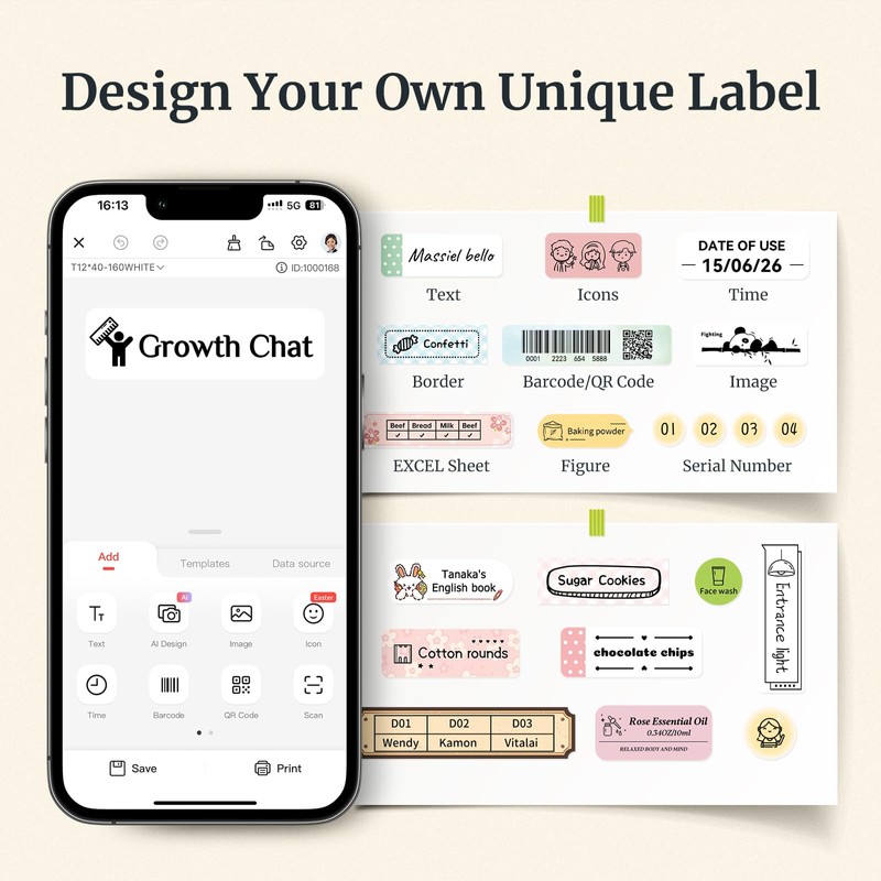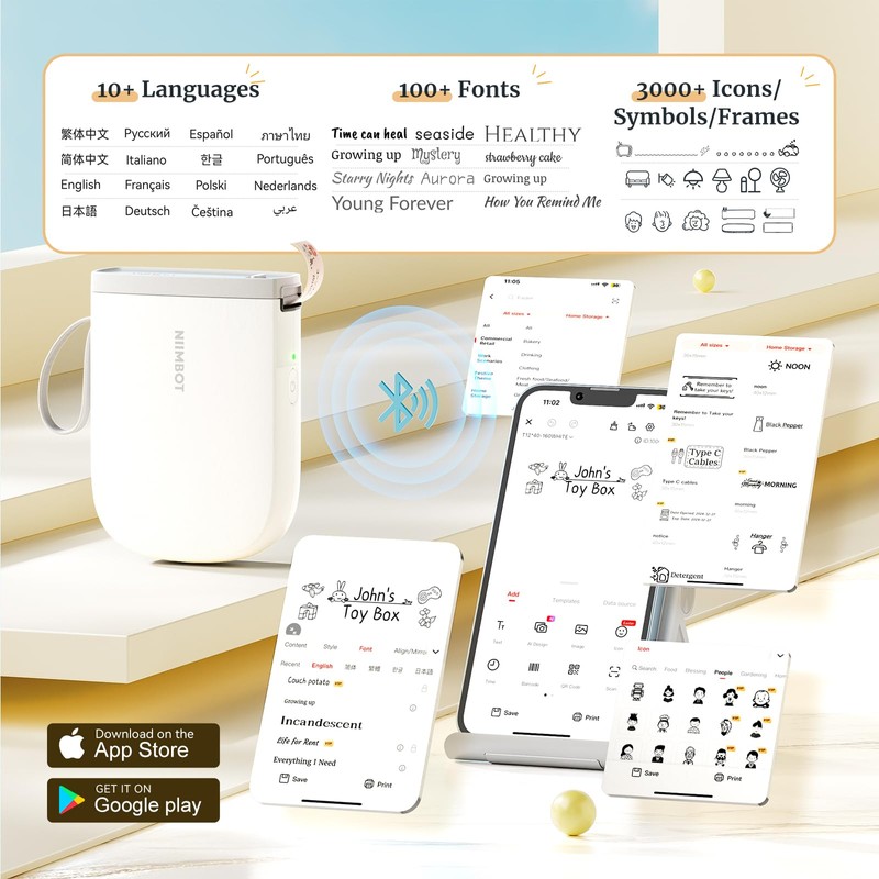 - Multiple Creative Templates: This app of sticker printer provides a variety of free templates, containing texts, symbols, logos, barcodes, QR codes, images, time, etc.Easy to create various cute labels from your smartphone. Labels are fixed in length, not support continuous label tape