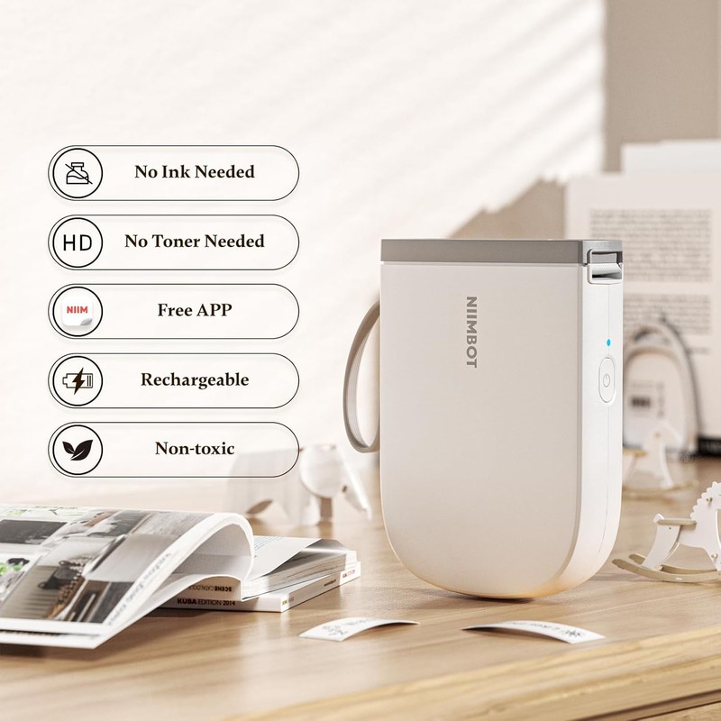 - 【Save Money & Environmentally Friendly】Don’t require expensive ink, toner or ribbons, lower cost compared to inkjet printers. The NIIMBOT printer only need thermal paper, which is water & oil resistant, and excellent self-adhesive to make it possible to keep long period, no residue left after removal. NIIMBOT D11-H label maker can meet almost all your printing needs in low-cost way and environmentally friendly