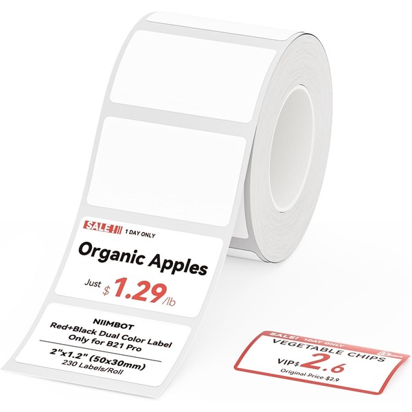 NIIMBOT Labels, Red Black Font Label for B21Pro Label Printer, 50 x 30 mm, 230 Labels/Roll