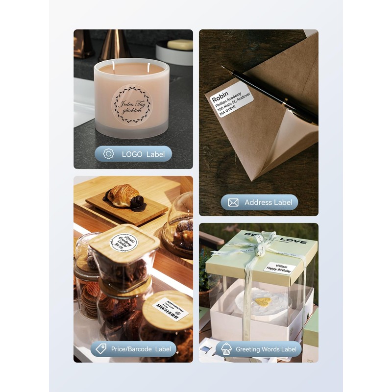 - Widely UseThis bluetooth label maker machine supports label width from 20 to 50mm, perfect for home (kitchen food and spices jars, bottles,storage boxes, homemade food,return address), for small business (price,product info, QR code, barcode, brand logo,ads), for school (name tag, teacher fast feedback label,clothes label,cup label)