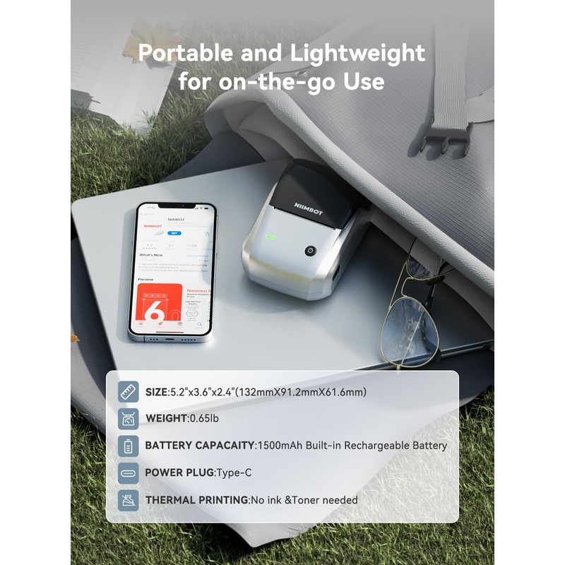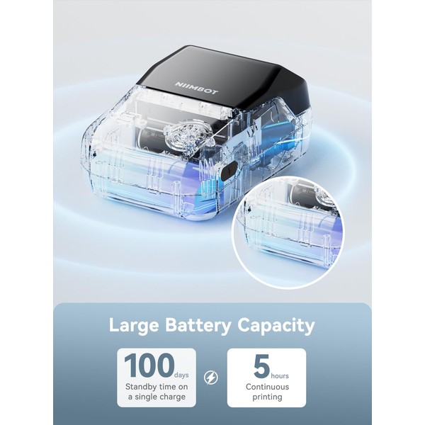- Portable and Rechargeable The thermal label printer weighs 293g and can slide into your pocket, easy to be carried anywhere. Built-in durable and rechargeable battery standby time up to 100 days on a single charge.