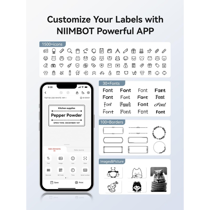 - Powerful APPMore than 30 fonts and languages, 100 borders, and 1500 symbols were supported by the app. Auto-identify the size of the label sticker, no need to manually select the template, complete the printing in time and quickly