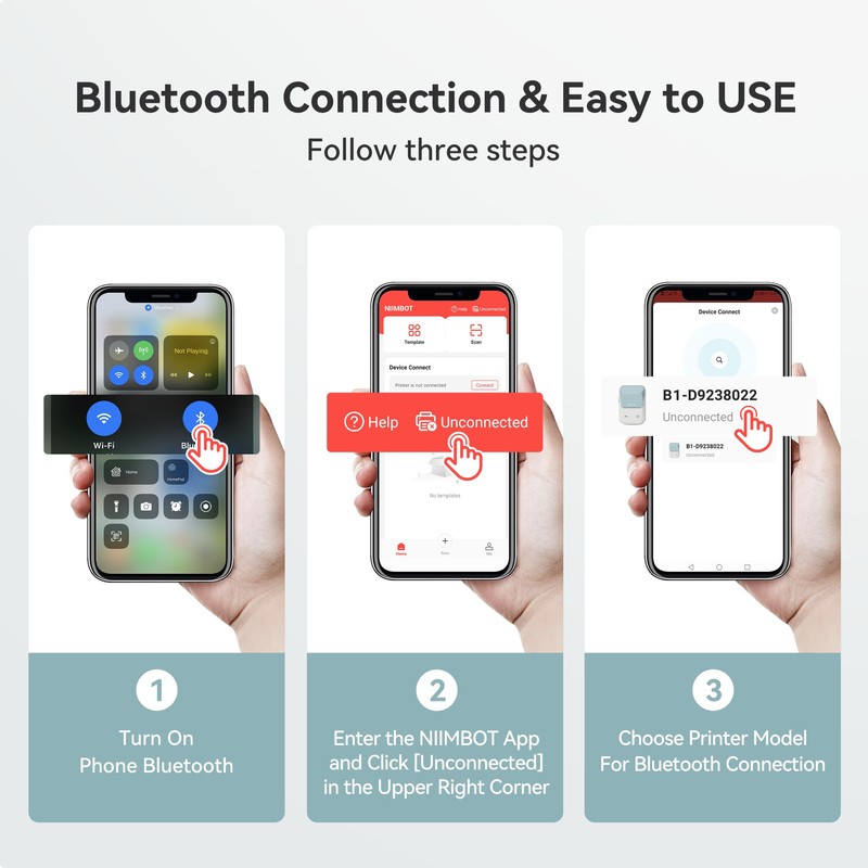 - Smart Bluetooth & On-the-Go Printing: The ultra-portable 2-inch B1 label printer supports iOS, Android, and PC. At just 0.7 lbs, it's compact and ready for quick printing anytime, anywhere.