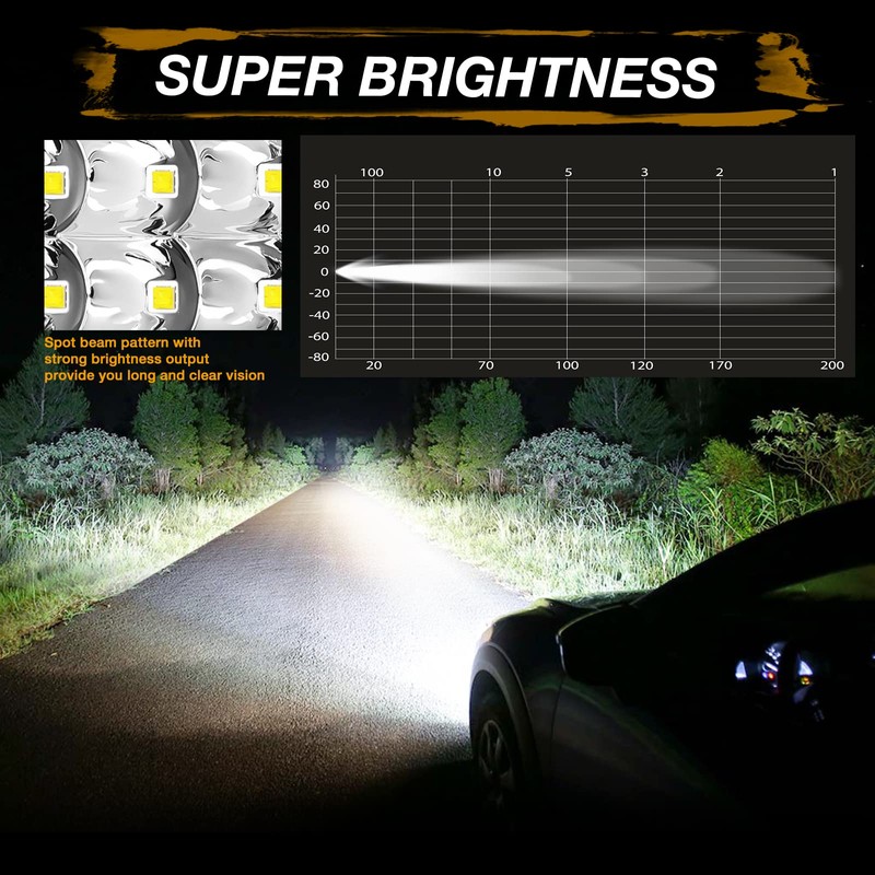 • Patrón de haz puntual: el haz puntual concentrado de 15 proporciona una luz brillante enfocada una máxima distancia hacia adelante y visibilidad de alta velocidad. Diseñado con tecnología avanzada de luz de copa profunda, emite una luz brillante y enfocada incluso alcanza los 200 m. Unpañero ideal los vehículos.