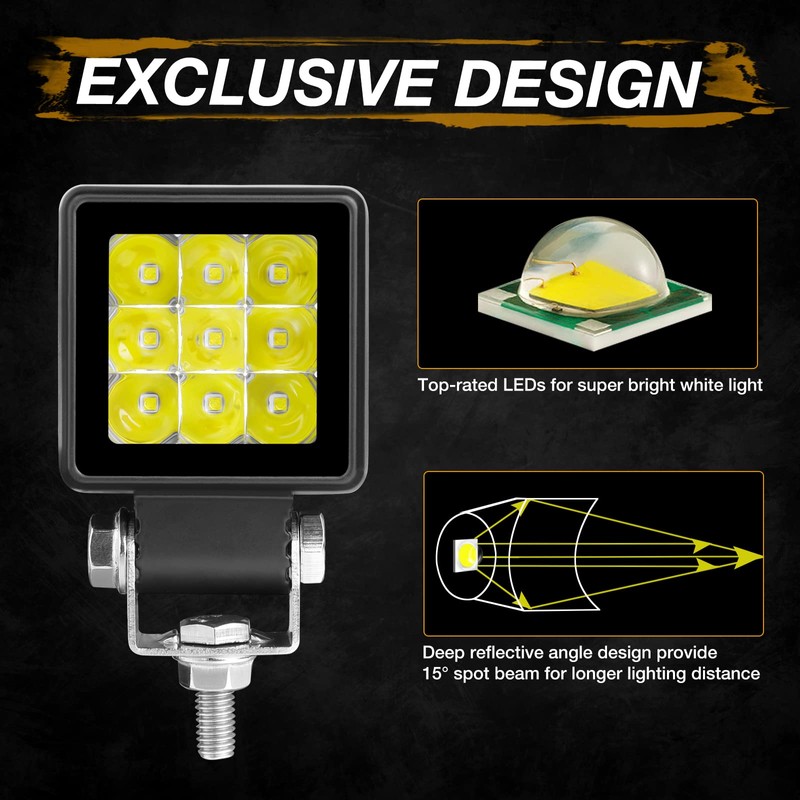 • Increíble brillo: solo cápsulas LED de 2 pulgadas, pero proporcion u eficiencia excepcional y una potente salida de luz. Conuido con 18 luces LED, nuea luz de conducción ofrece un brillo de 54 W y 5400 lm, emite luz blanca fría de 6000 K que ilumina eficazmente la carretera oscura hacia adelante, mejorando drásticente la seguridad y la visibilidad nocturnas.