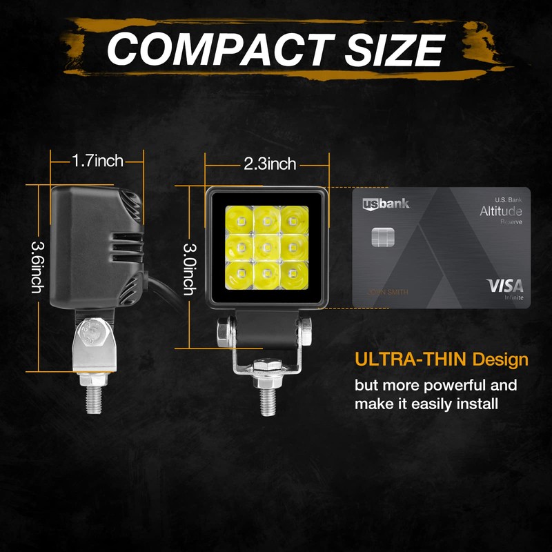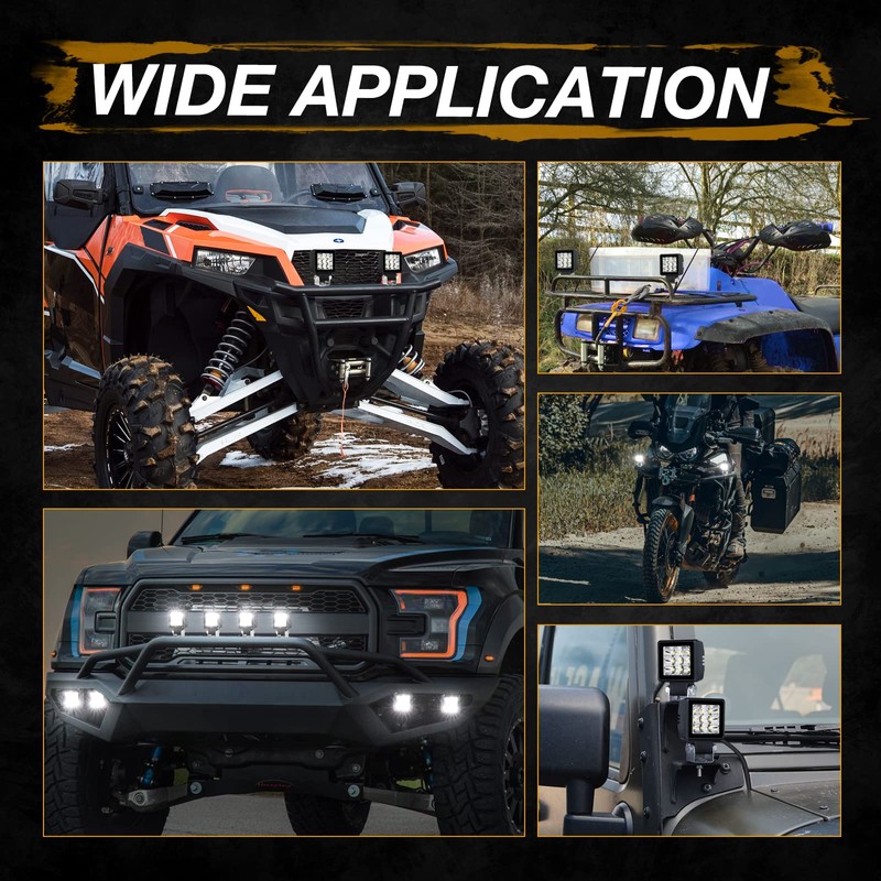 • plia aplicación: con voltaje de trabajo de 9 a 30 V CC, las cápsulas de luz LED 2 x 2 se pueden utilizar ampliamente en la mayoría de vehículos y dispositivos,o diferentes tipos de todoterreno, SUV, ATV, UTV, camiones, marina, motocicleta, barco, resistente, etc. y cualquier lugar como: parachoques delantero o trasero, lugar de luz antiniebla OEM, barra de toro, zanja, pilar, capó, techo, cama de camión u otros lugares. 2 años de y 24 horas de servicio posventa