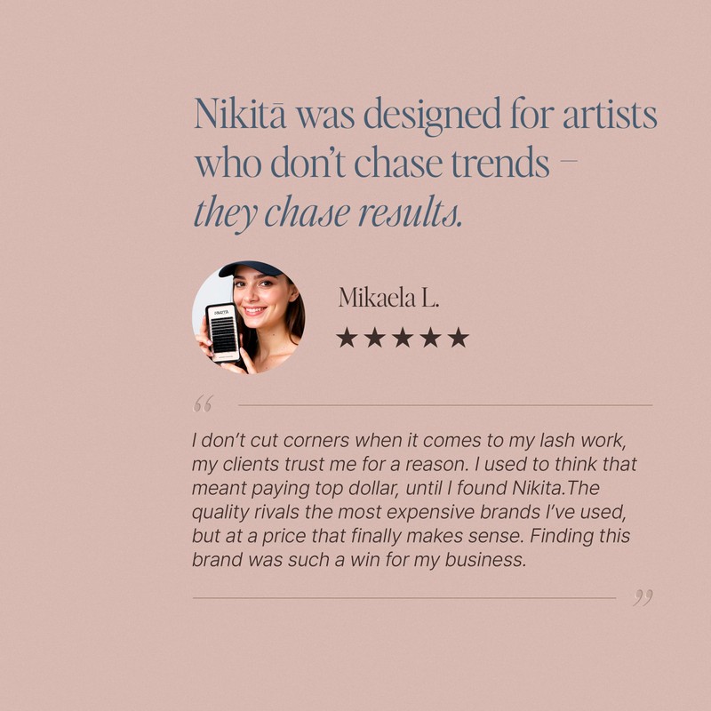 Lightweight, ultra-soft, and free of toxic dyes, NIKITĀ atelier Lash Extensions are intentionally designed by lash artists for lash artists - for easy use, irritation-free wear, and results that keep lash babes coming back. Artists love them. Clients ask for them by name. And your lash sets? They’re about to enter a league of their own.
