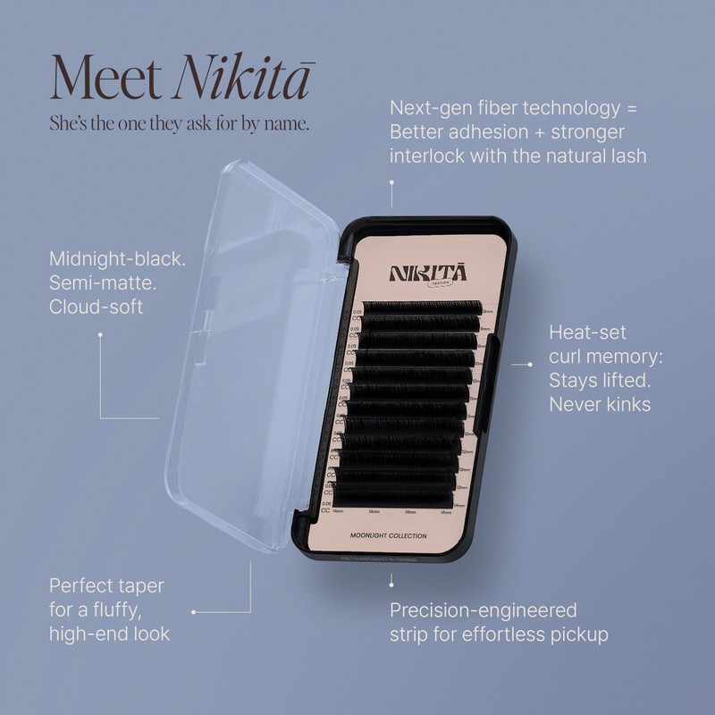 Lightweight, ultra-soft, and free of toxic dyes, NIKITĀ atelier Lash Extensions are intentionally designed by lash artists for lash artists - for easy use, irritation-free wear, and results that keep lash babes coming back. Artists love them. Clients ask for them by name. And your lash sets? They’re about to enter a league of their own.
