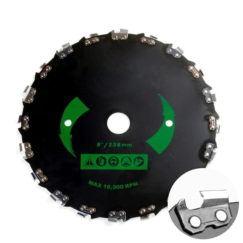 High speed: designed to operate at speeds of up to 10,000 rpm. The chain teeth riveted to the saw blade can be sharpened with a 3/16" chainsaw file.