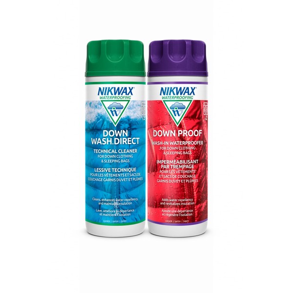 Nikwax Down, Down DUO-Pack, 300ml, Wash-In Cleaning and Waterproofing adds DWR Water Repellency to Down Filled Jackets, Outerwear, Sleeping Bags, Restores and Protects Insulation and Loft