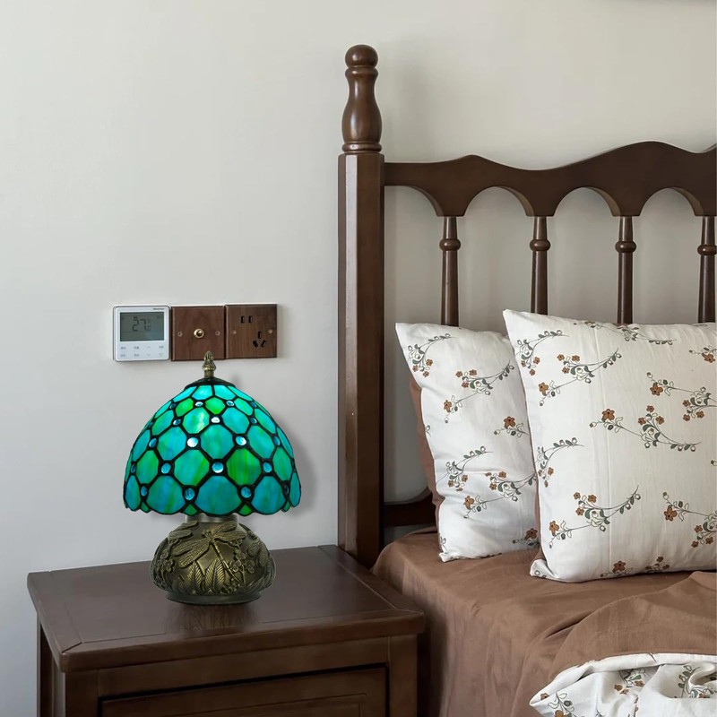 - 【Small Tiffany Table Lamp】Small stained glass lamp with dragonfly base,only8x11inch,the dragonfly tiffany lamp takes up little space and is suitable for placing on bedside tables, desks, fireplaces, etc. It can be used as a home decoration or as an art collection.