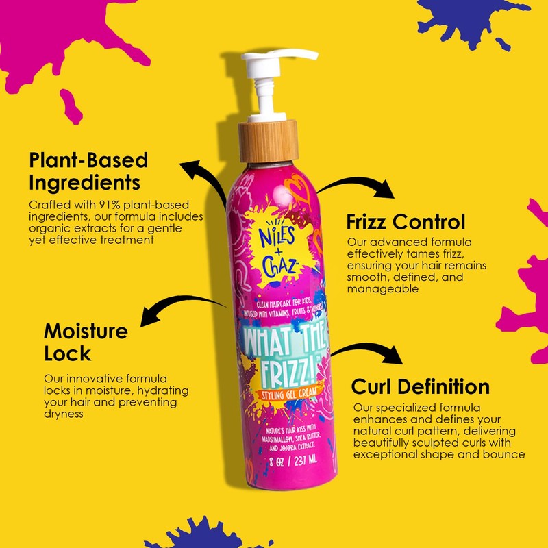 Niles and Chaz What the Frizz! Styling Gel Cream - Curl Cream, Anti Frizz & Weightless Defining Gel - Paraben, Sulfate, Silicone Free - Curly, Coily, Wavy Hair Products (8 Oz)