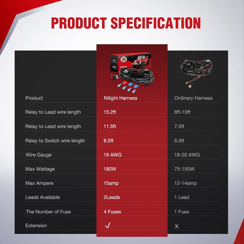 - Package includes: 1 x 12ft wiring harness, 1 x instructions, 2 Years Warranty Honored by Nilight