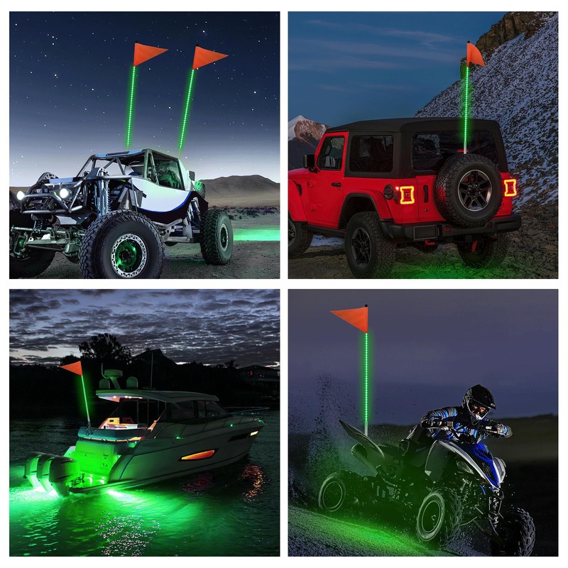 - Wide Application: LED whip light can be used as decorative light, signal light, warning light. It is suitable for all DC 12v vehicles and is popular as a flagpole safety light on Can-am ATV UTV RZR Polaris dune buggy, sand track kart, four wheeler, off-road truck, etc.