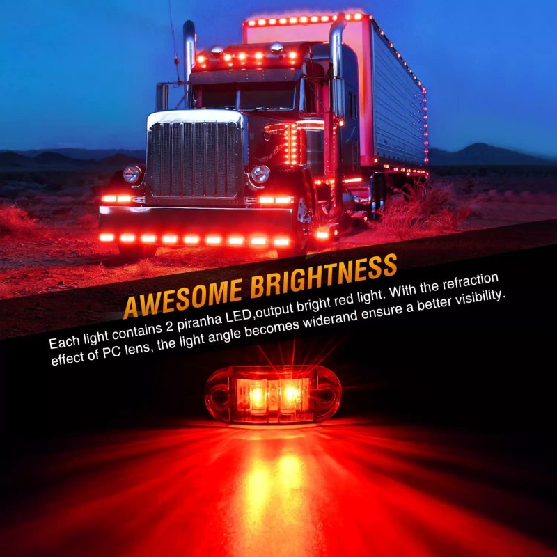 Nilight 2.5” side marker light, each light includes 2 durable diode LEDs. Output super bright red and amber light, so that the vehicles behind can easily see the light changes. Work as led side marker light clearance light on 10-30V Truck Pickups Trailer SUV Van Caravan Boat Lorry Bus etc.