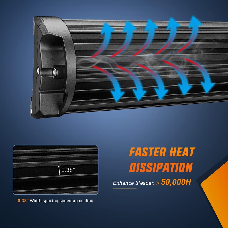 - 【Upgrade Side Shooter Design】Designed with side lights at two ends, quadruple rows of daul sided lights and nested reflector cup design combined beam, 60° flood beam and 30° spot beam, shoots out a 200° wider and further light coverage to clear darkness and potential hazard, increasing your driving safety. Works great as fog lights, side lights, driving lights, etc.