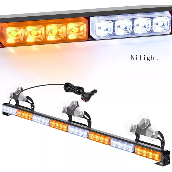 Nilight 35inch 32 LED Emergency Strobe Light Bar Traffic Advisor - Amber & White