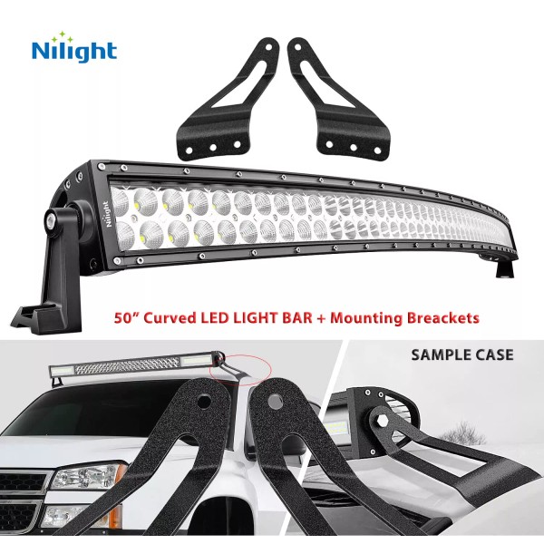 Nilight 50" 288W LED Light Bar + Mount Brackets For Chevy Silverado & GMC 07-14