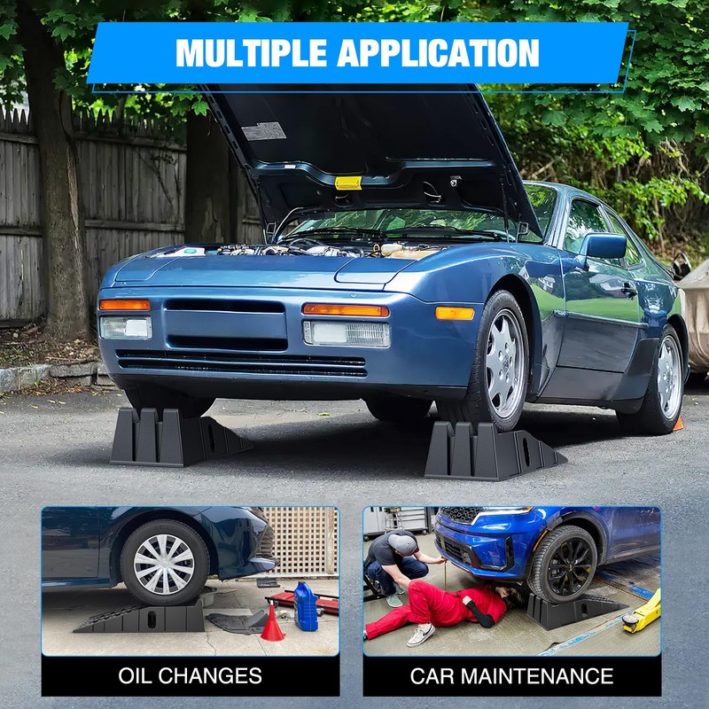 - Widely Application: This oil change ramps provides safe and reliable access for a variety of vehicle repair and maintenance tasks, making it ideal for a wide range of vehicles, offering a stable lift when working on car, SUV, and vans