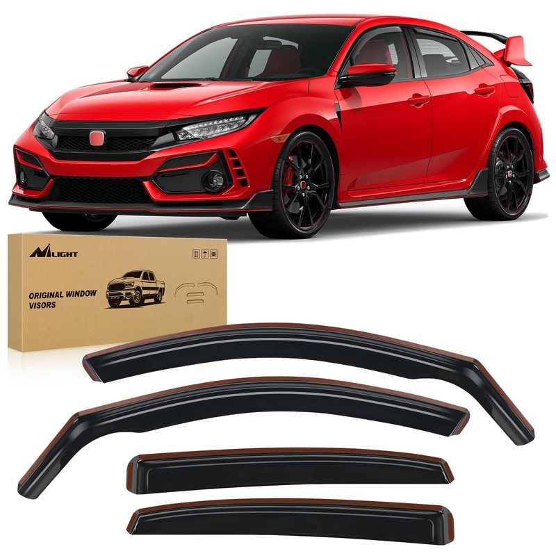 Nilight Durable in Channel Rain Guards for Honda Civic Hatchback 2016 2017 2018 2019 2020 2021 Window Deflectors, Vent Window Visors-4pcs