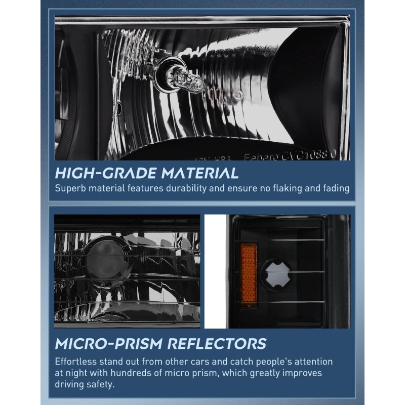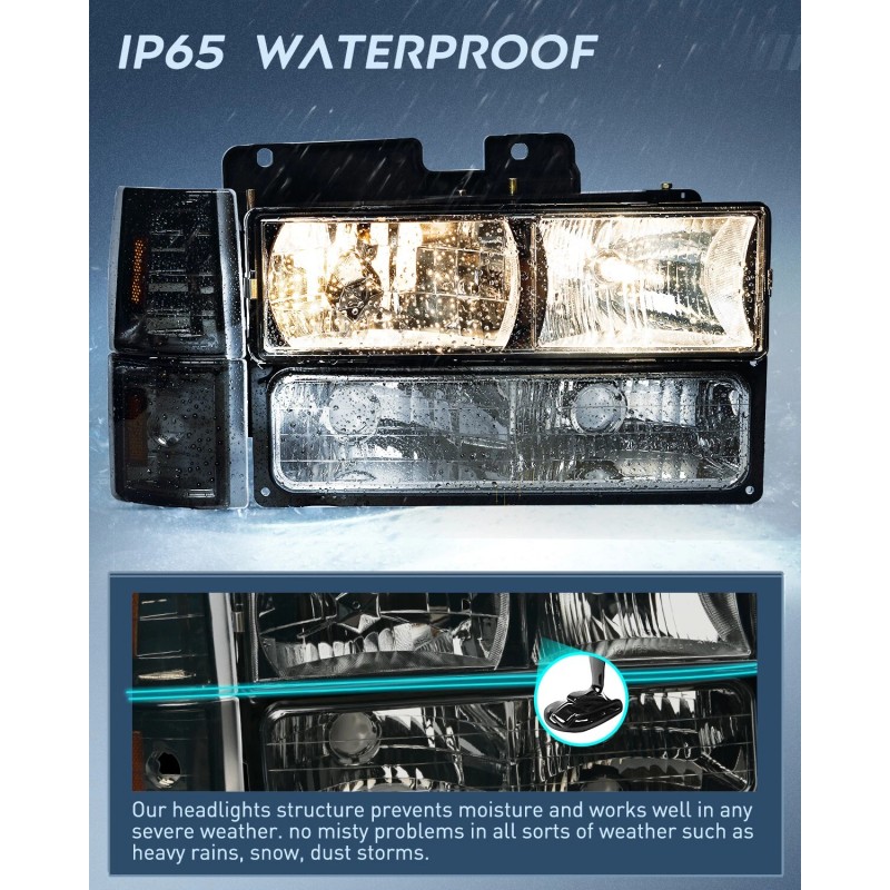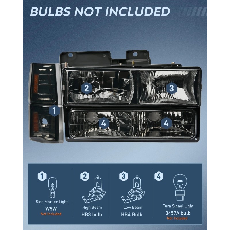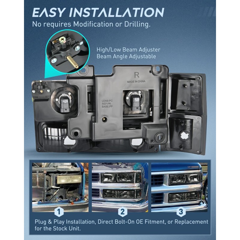 - Compatibility: The headlights assemblies are compatible with 1994-1998 GMC C10 full size pickup truck;1994-1998 GMC Sierra;1994-1998 Chevy Suburban;1994-1998 GMC Yukon;High/Low beam bulbs are included.