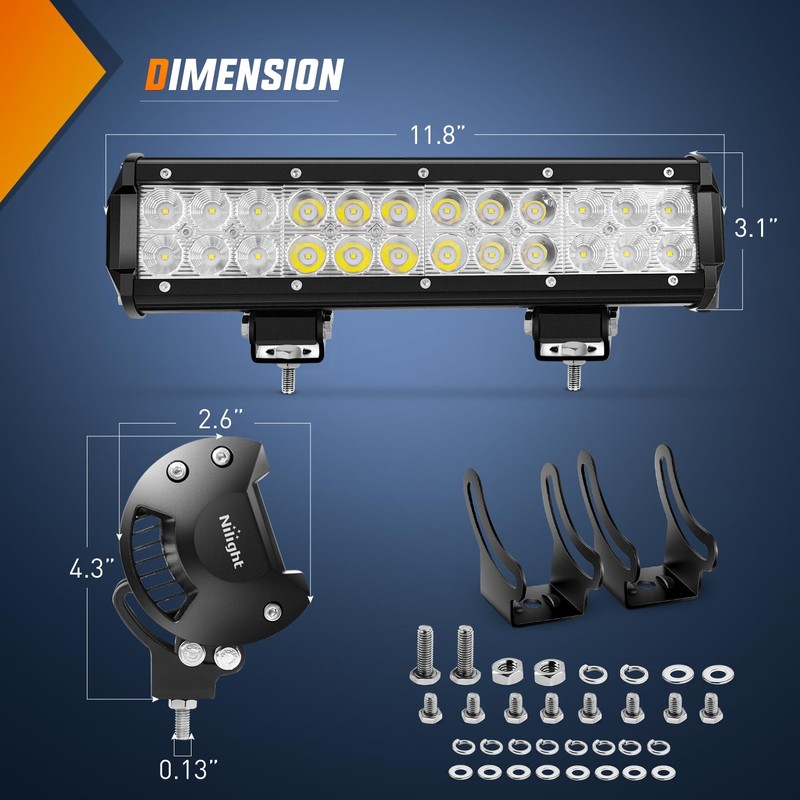 Nilight LED Light Bar with Yellow/Black Covers 2 PCS 12 Inch 72 W Spot Flood ...